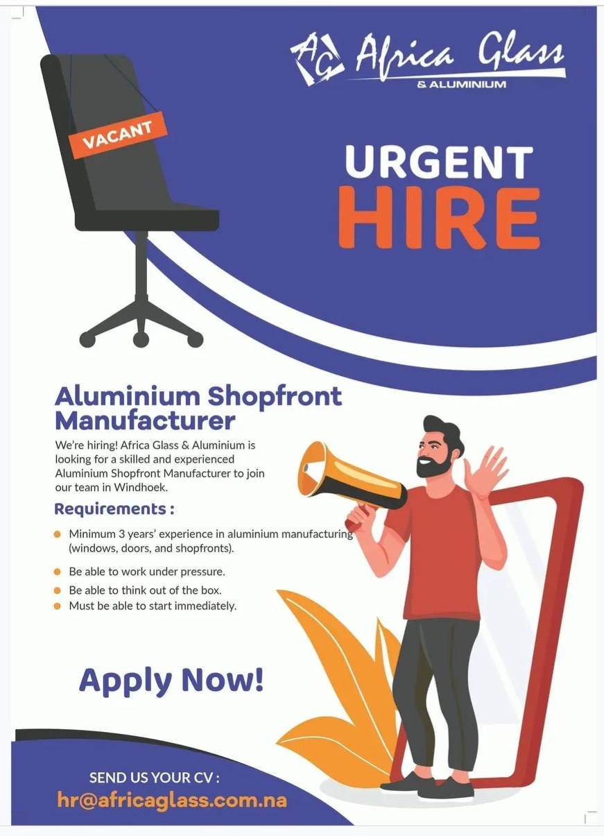 Africa Glass Namibia Vacancies 2026 : Apply Now for Aluminium Shopfront Manufacturer Job Opportunities in Namibia