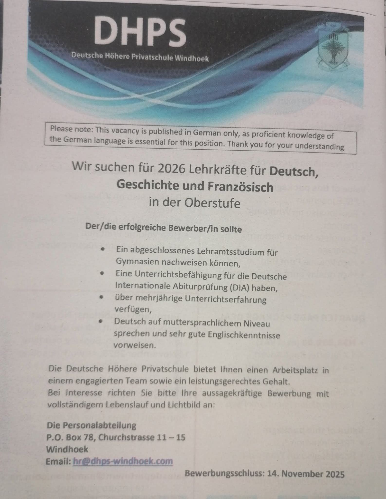 DHPS Namibia Vacancies 2025 | DHPS Careers Register | www.dhps-windhoek.de Vacancies 2025 | www.dhps-windhoek.de Application form | DHPS Jobs 2025 | Available vacancies at DHPS .