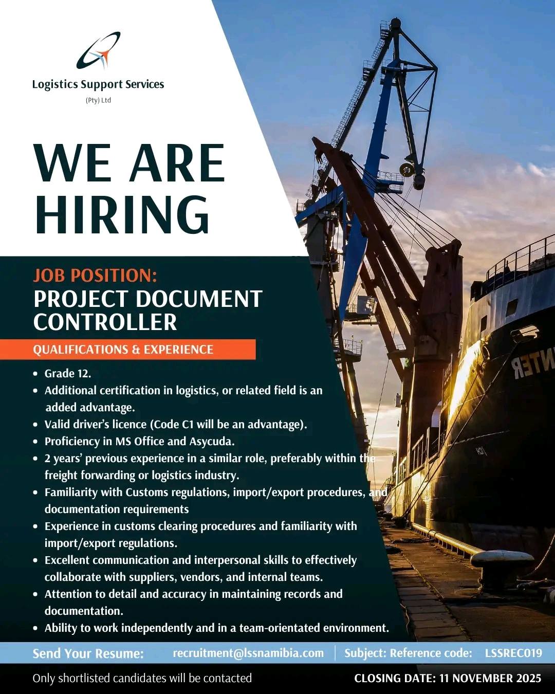 Project Document Controller Walvis Bay, Erongo, Namibia 20 November 2025