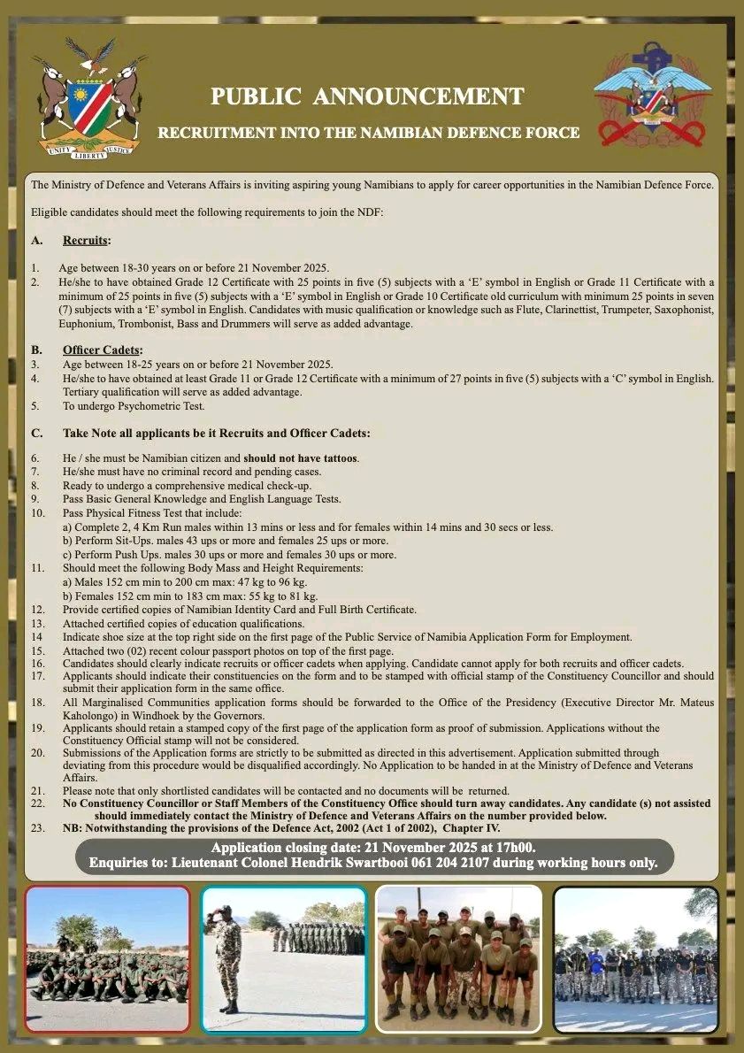 | Officer Cadets | Windhoek, Khomas, Namibia | 21 November 2025 |