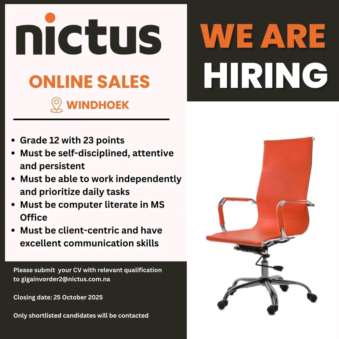 Nictus Namibia Vacancies 2025: Apply Now for Stock Clerk,Online Sales Job Opportunities in Namibia