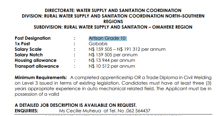 | Artisan Grade 10 | Gobabis, Omaheke Region, Namibia | 17 October 2025 |