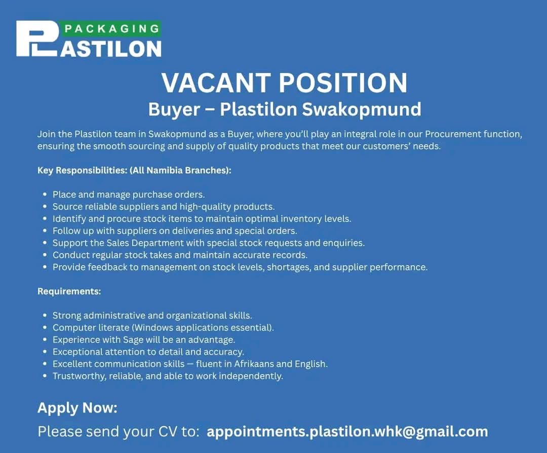 Plastic Packaging Namibia Vacancies 2026 : Apply Now for Buyer Job Opportunities in Namibia