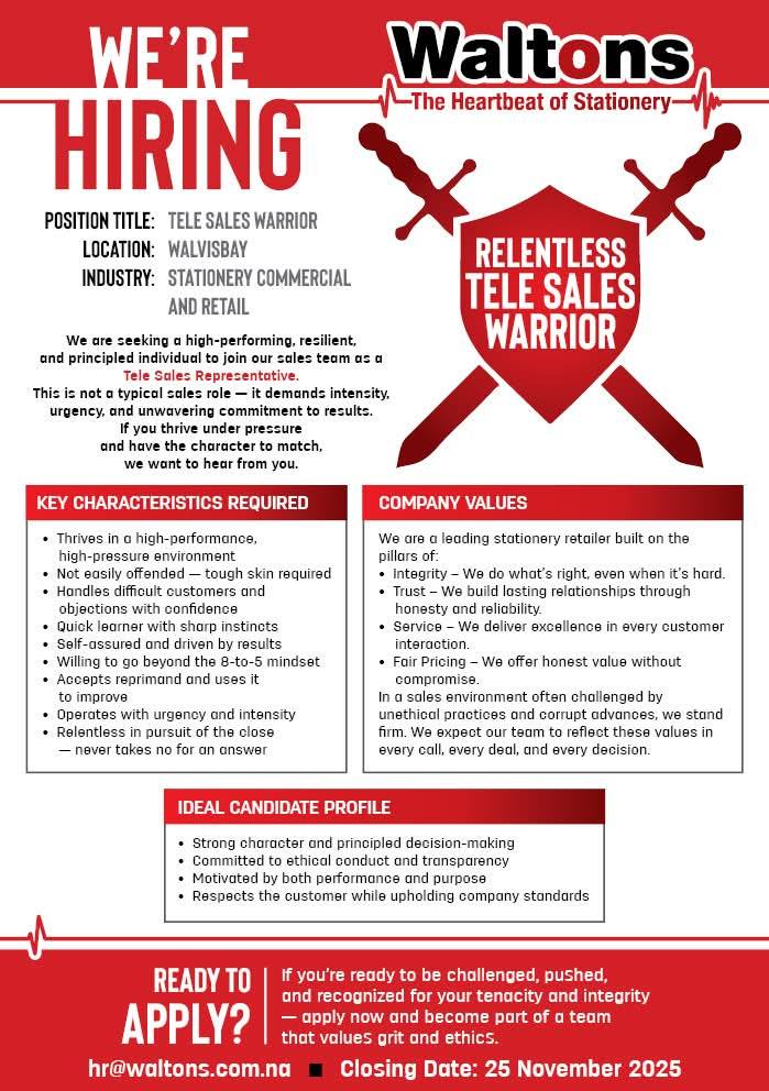 | Tele Sales Warrior | Windhoek, Khomas , Namibia | 25 November 2025 |